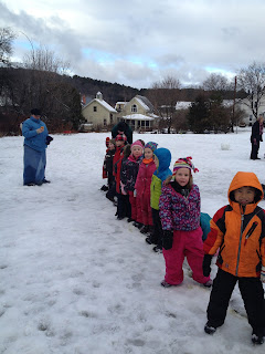 All 80 kindergarten kids, 5 classroom teachers, an ELL teacher,4 instructional assistants and plenty of parents( thank you volunteers), set out for a morning of adventures last Wednesday. Kids were split into 4 groups with mixed classes. Each group visited the four stations. The stations included, "Snow Sculpting", "Forest Exploration and Sliding", "Tea, Snack and Story", "Movement and Snowball Throwing". It was a wonderful morning, with lots of mushy snow, smiles, and tons of cooperation. Ask your child about their favorite rotation!